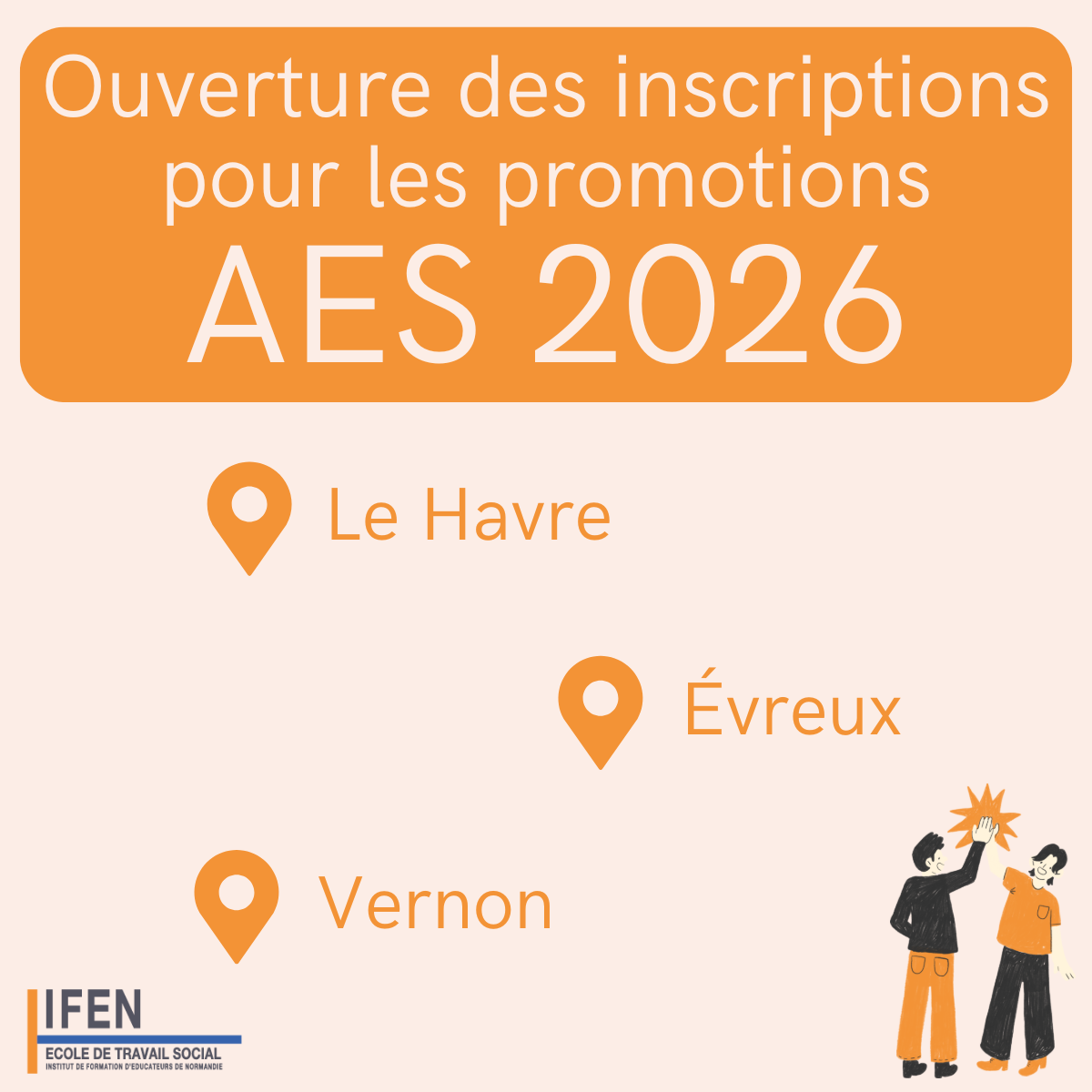 L’IFEN ouvre les inscriptions pour ses prochaines promotions du Diplôme d’État d’Accompagnant Éducatif et Social (AES) sur trois sites en Normandie :